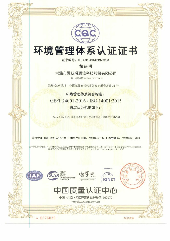 環境管理體系證書
